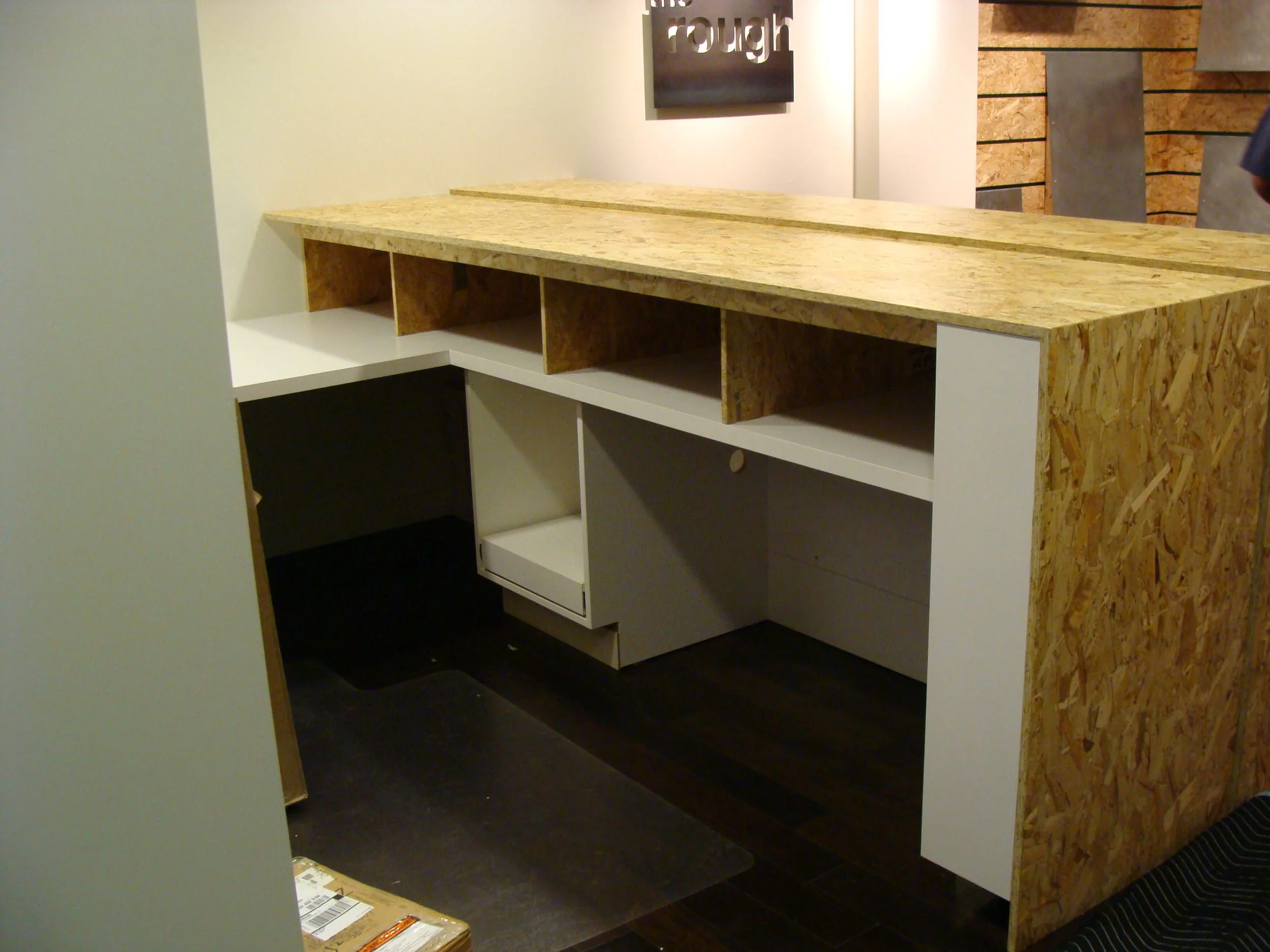 Thus, the furniture and fixtures were all created in a slightly rough, unpolished state to reflect the starting point of ideas both good and bad. Check out the photos of the new space, "The Rough."